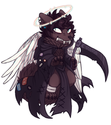 Tags: fox wings divine angel reaper halo hair piercings fangs punk fallen angel canid unholy technically not a fox but i preferred its base curly hair