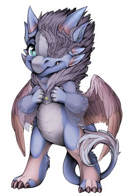 The gem acts as an amplifier and channel for her magic, almost like a wand. Her body, over time, has morphed and changed to match her gemstone, hence the soft blues, pinks, and purples of her scales and feathers.