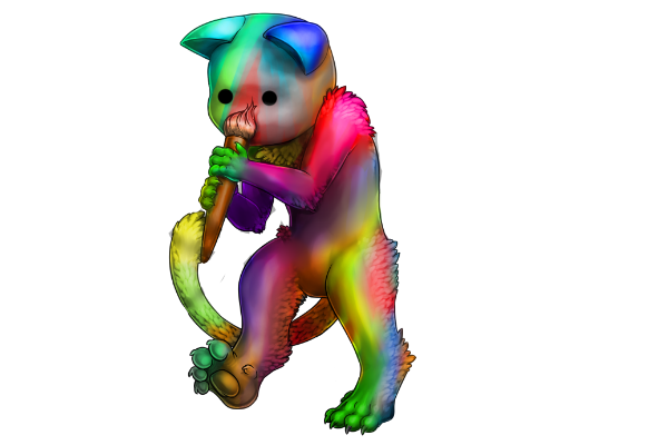 A sweetie of a Scrawlyface who just loves rainbows and wanted to express their love of rainbows by painting their body like a rainbow. They honestly will cuddle the heck out of you.