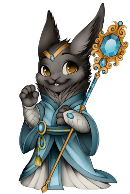 Easily flustered and not always well-prepared, she is often seen with her fur rumpled and her circlet askew. But her robes and staff are prized possessions and she tends to them carefully, as she does to all things that are important to her.