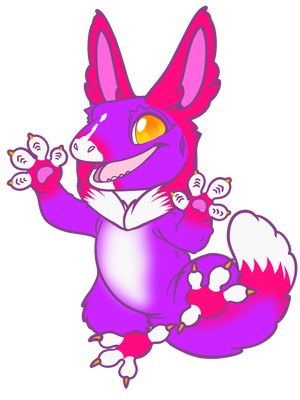 Cookie chirps, admiring this creature's bright colours and fluffy tail. She reaches out to bat one of his long ears, squeaking happily.