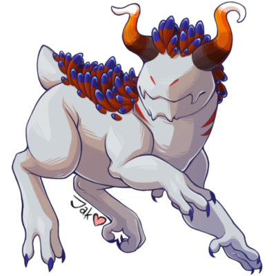 Ikaraan is generally lighthearted and curious, eager to investigate anything strange and new that he hasn't encountered before. Friendly and docile, this bull sized creature would prefer to flee than fight, even though he comes well equipped to defend himself. Ikaraan makes a wide array of noises, ranging from squeaks and groans much like those heard from humpback whales, to baritone honks and barks like that of sea lions. His actions could be likened to that of a large dog.