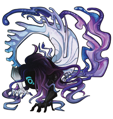 A custom character design made for me as a birthday gift by a close friend. Deliria features aesthetics drawn from the poolrooms, leafy sea dragons, and my biased color palette all mixed in with some creepy vibes. Her bio is still a WIP, but I headcanon her as a somewhat lonely creature that lurks within the poolrooms waiting for new people to show up. By nature, she seems playful and curious, albeit potentially shy, and when she's in the more shallow waters, she bears an extremely colorful appearance. However, even in the brightest light, her left arm, head, and shoulders are always cloaked in shadow which gives her an unsettling appearance and aura thanks to her glowing eyes.