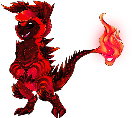From deep within the volcanic mantle she formed, undergoing extreme pressures and heat most Ashfurns could not endure. She emerged from her egg and crawled up to the surface, tasting the smoky air for the first time. Among the ash and the polluted atmosphere, her fur can be seen sparkling like real gemstones. Her fire burns with great passion, and gives off a vibrant hum of light.