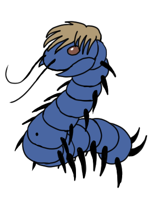 Beth is a blue centipede, but she has an unusual parentage because she was born from not two, but THREE human dads! but I can't name them because I think it might break the rules here OTL