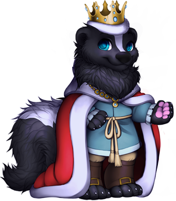 Letting yourself into the orchard, you see a skunk carrying a basket on one arm, plucking berries from the berry bushes. He carries himself like royalty, with both a crown of gold and diamonds on his head, and a royal cloak around his shoulders. And yet, underneath that, he wears the humble clothes of a farmer. How strange.