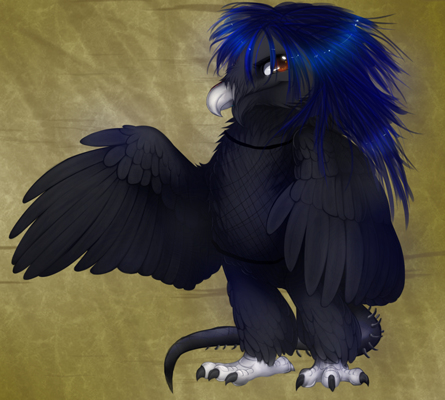 Hair Style/Color: Gothic style; goes down to hips/ Blackish-blue naturally.