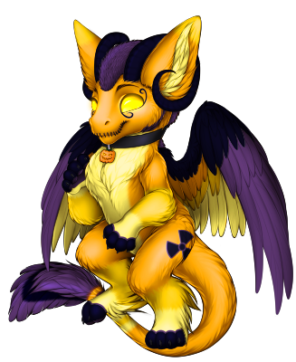 Hallowhazard is a mischievous and playful DAD, with more cat-like mannerisms than anything, to a point that she will purr when happy and randomly 'meow' and 'mew' at things that take her interest. She will also hiss at anything she doesn't like or when threatened. She is very lovable and friendly though, and usually willing for hugs and nuzzles for anyone who asks for them.